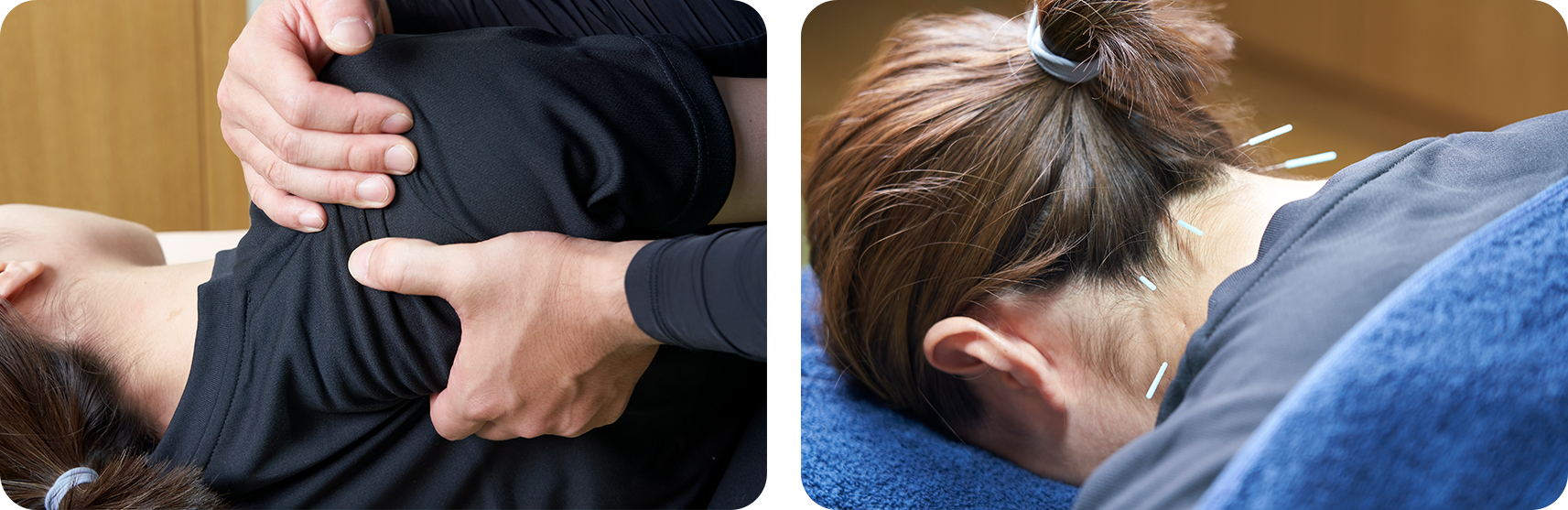 施術前にしっかりとヒアリング、可動域やテストを行い原因を見つけ、説明し施術を行なっていきます。